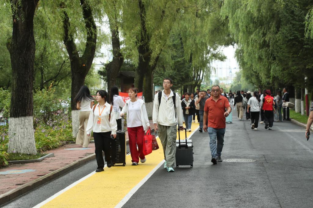 为保障新生报到高效顺畅,各职能部门与学院通力配合,在报到引导、宿舍分配、后勤服务等环节做了细致安排。学校在牡丹江火车站设置了新生接站服务点,志愿者们提前到岗,以热情的笑容和贴心的服务迎接每一位抵达的新生,协助搬运行李、引导乘车,用行动传递来自牡师的第一份温暖;设立绿色通道,为经济困难学生精心准备了爱心大礼包,确保每一名学生“无忧入学”。同时,学校全面加强交通引导与物资供应,优化餐饮服务,并专设咨询点、心理辅导站、家长等候区及医疗点等多功能服务区,为新生及家长提供全方位贴心服务。