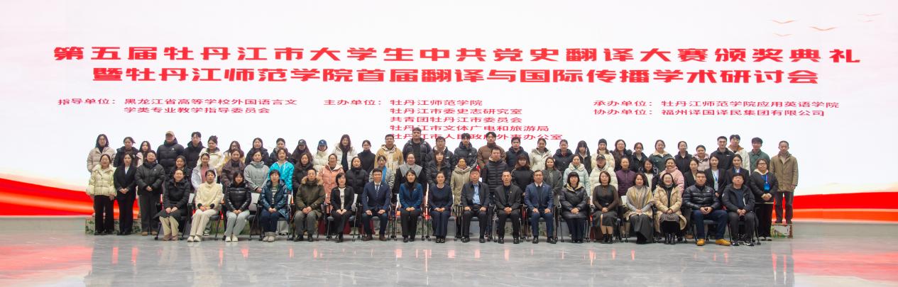 11月29日,第五届牡丹江市大学生中共党史翻译大赛颁奖典礼暨牡丹江师范学院首届翻译与国际传播学术研讨会在我校教师教育实训楼报告厅举行。来自黑龙江大学、广东外语外贸大学、西安外国语大学、东北师范大学、大连外国语大学、东北林业大学等高校的专家学者、获奖师生代表及我校师生共计140余人参会。