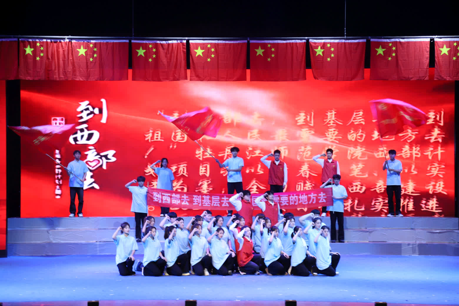活动在全体师生合唱《前进吧,中国共产党》的激昂歌声中圆满落幕,全场师生挥动旗帜,齐声高歌,展现了牡师青年青春向党挺膺担当的坚定信念,为实现民族复兴伟业团结奋斗的坚强决心。