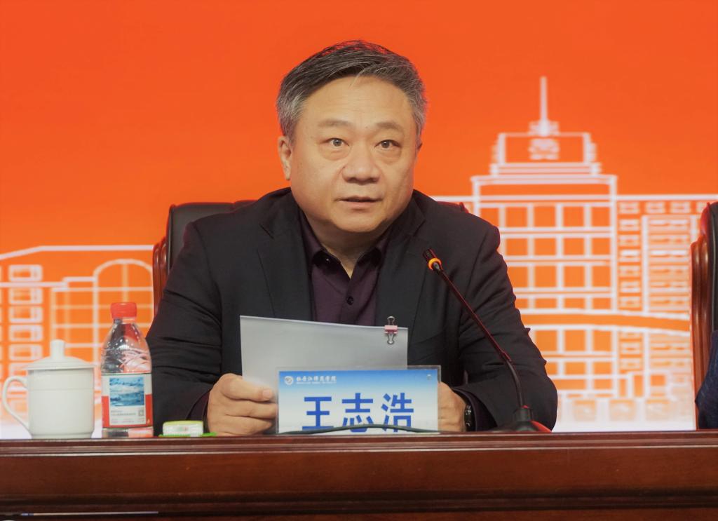 为深入学习贯彻党的二十届四中全会精神,推动全会精神在我校落地生根,进一步提升广大干部的政治素养、理论水平和履职能力,树立和践行正确政绩观,为开创我校高质量发展新局面凝聚智慧和力量,4月12日上午,学校党员干部能力素质提升“大讲堂”第一期:学习贯彻党的二十届四中全会精神培训班在实训楼报告厅正式开班。党委书记王志浩出席会议并讲话;院长、党委副书记丛喜权主持会议。党委副书记刘松,党委常委、组织部部长刘恒文,全体处级以上干部参加培训。