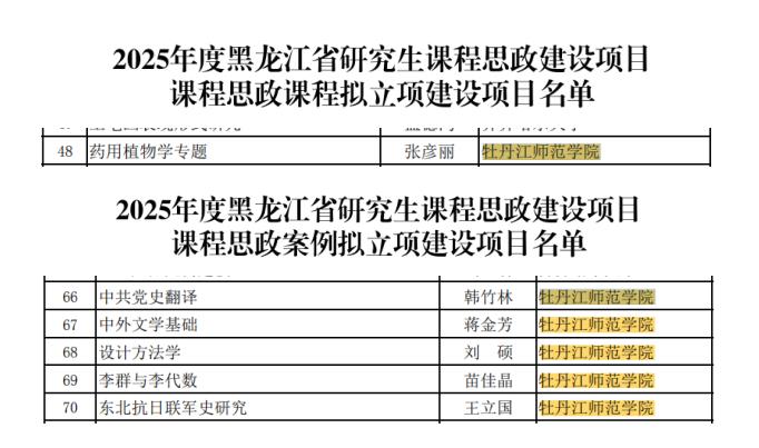 近日,黑龙江省2025年度研究生课程思政高质量建设项目立项名单公示。经过激烈角逐,我校荣获省级研究生课程思政课程建设项目1项、省级研究生课程思政案例建设项目5项。