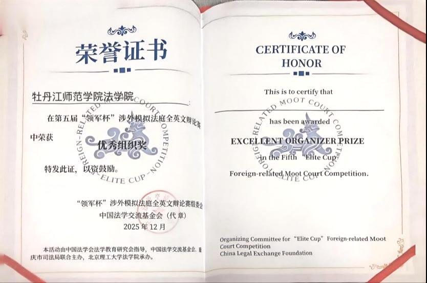 近日,第五届"领军杯"涉外模拟法庭全英文辩论赛(东北地区首批参赛)与第四届"华东政法大学杯"知识产权全英文模拟法庭竞赛(东北地区唯一参赛)分别在上海和北京圆满落幕。我校法学院在这两项涉外法治赛事中斩获五项殊荣,成为东北三省首个同时参与这两项重要涉外法治竞赛的高等院校,充分展现了学校在涉外法治人才培养方面的卓越成效。