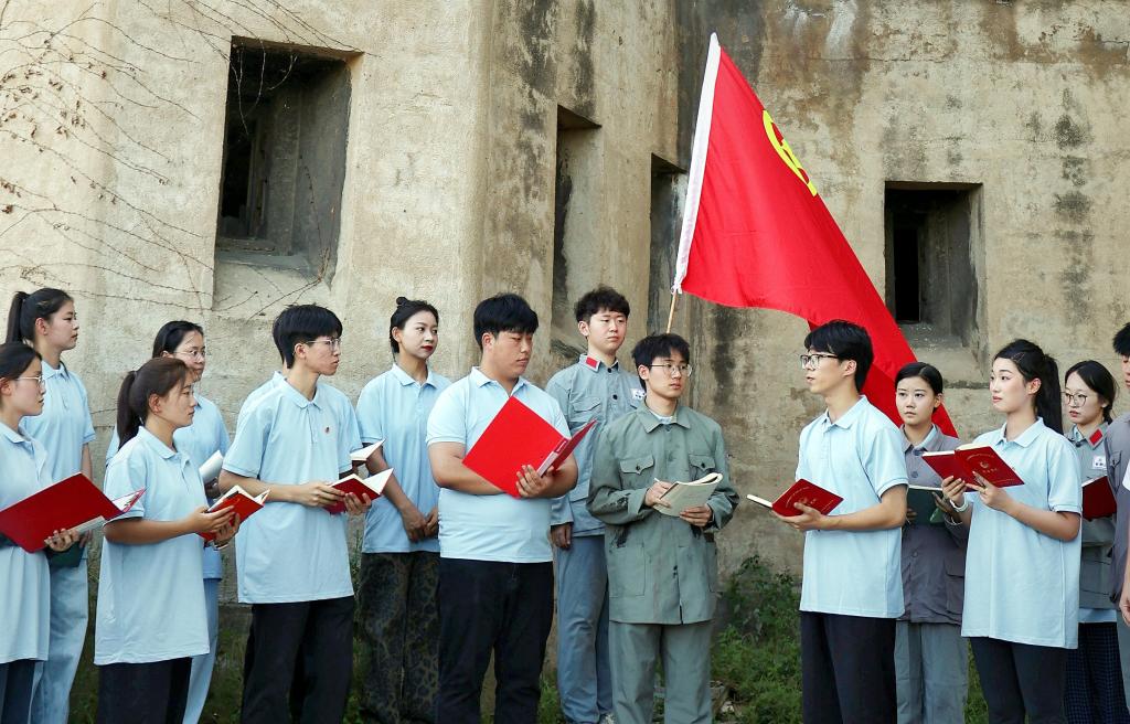 诵红色诗篇,忆峥嵘岁月。团青们以诗为声,共同朗诵《八秩铭胜利抗战魂永扬》。激昂的语调与遗址的历史厚重感交织,一字一句皆饱含对先烈的缅怀、对和平的珍视。将爱国情怀与奋进力量融入心间,展现出新时代青年传承红色基因的坚定信念。