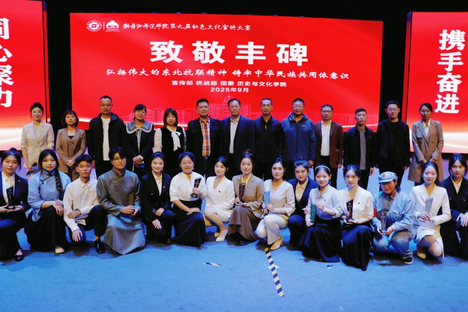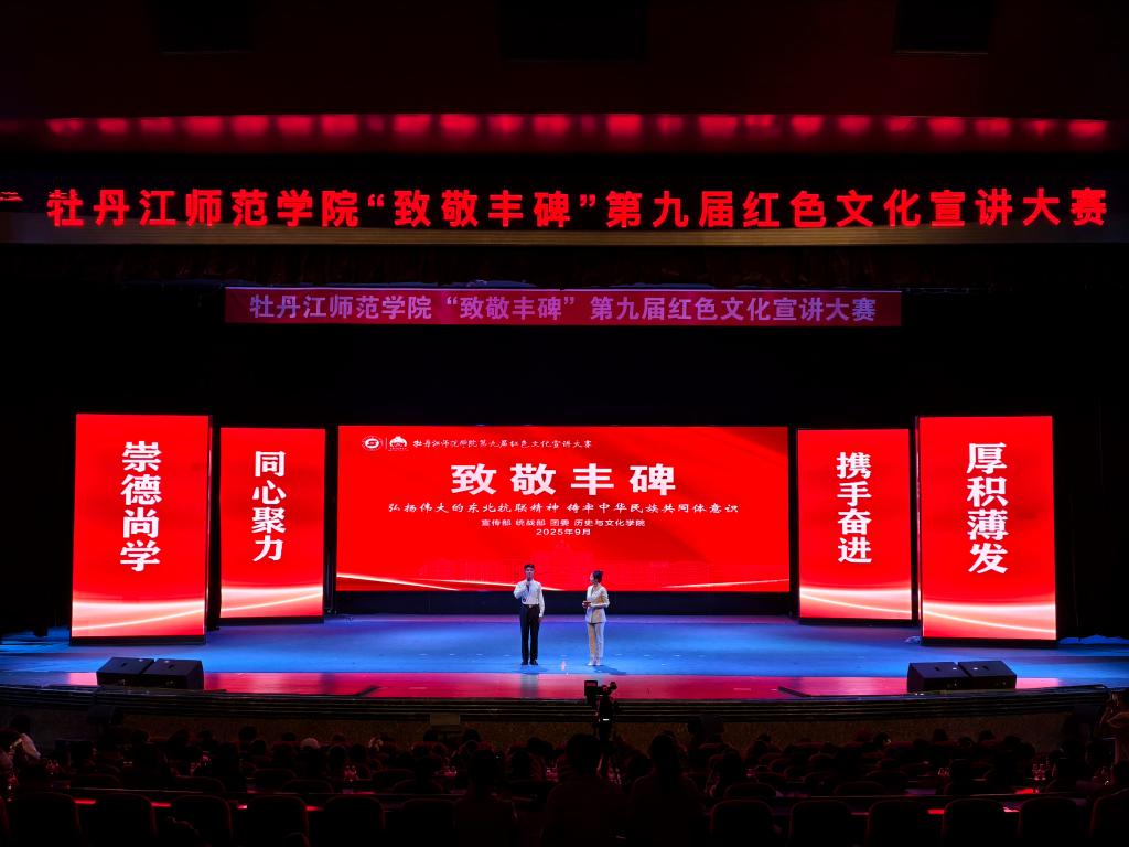 “致敬丰碑”红色文化宣讲大赛由党委宣传部、党委统战部、团委、历史与文化学院联合举办,旨在深入学习贯彻习近平新时代中国特色社会主义思想,弘扬伟大的东北抗联精神,铸牢中华民族共同体意识,激发青年学生的爱国热情,增强民族自豪感和使命感,为纪念中国人民抗日战争暨世界反法西斯战争胜利80周年营造浓厚氛围。