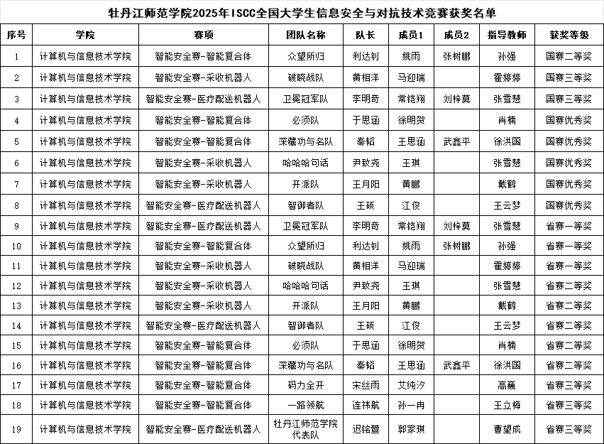 自赛事启动以来,学校高度重视,计算机与信息技术学院积极组织学生备赛,配备经验丰富的指导教师团队,提供专业的实验平台与训练支持。此次佳绩的取得,充分展现出我校在智能安全与机器人交叉领域的扎实技术积累与创新能力,有效地提升了学生在融合信息安全与智能技术的复杂场景中的实战能力。学校将继续鼓励学生参与此类赛事,培养更多具有创新意识和技术综合应用能力的人才。