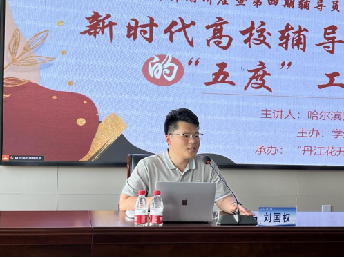 刘国权结合自己从事辅导员的工作经历,分享了工作经验和体会,进一步阐述了如何做到“辅导员的育人温度”,并为大家推荐了思想政治学习的有关课题和论文。他表示,作为辅导员要练好内功、提升修养,担当起育人重任,找准自身角色定位,成为推动学校高质量发展的生力军,更好地完成新时代赋予的新使命。