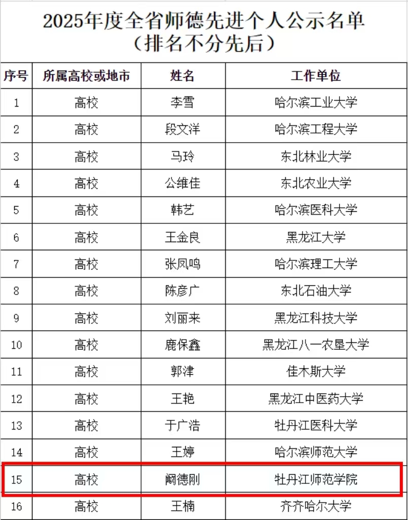 喜报!我校教师荣获2025年度全省教育系统师德先进个人荣誉称号