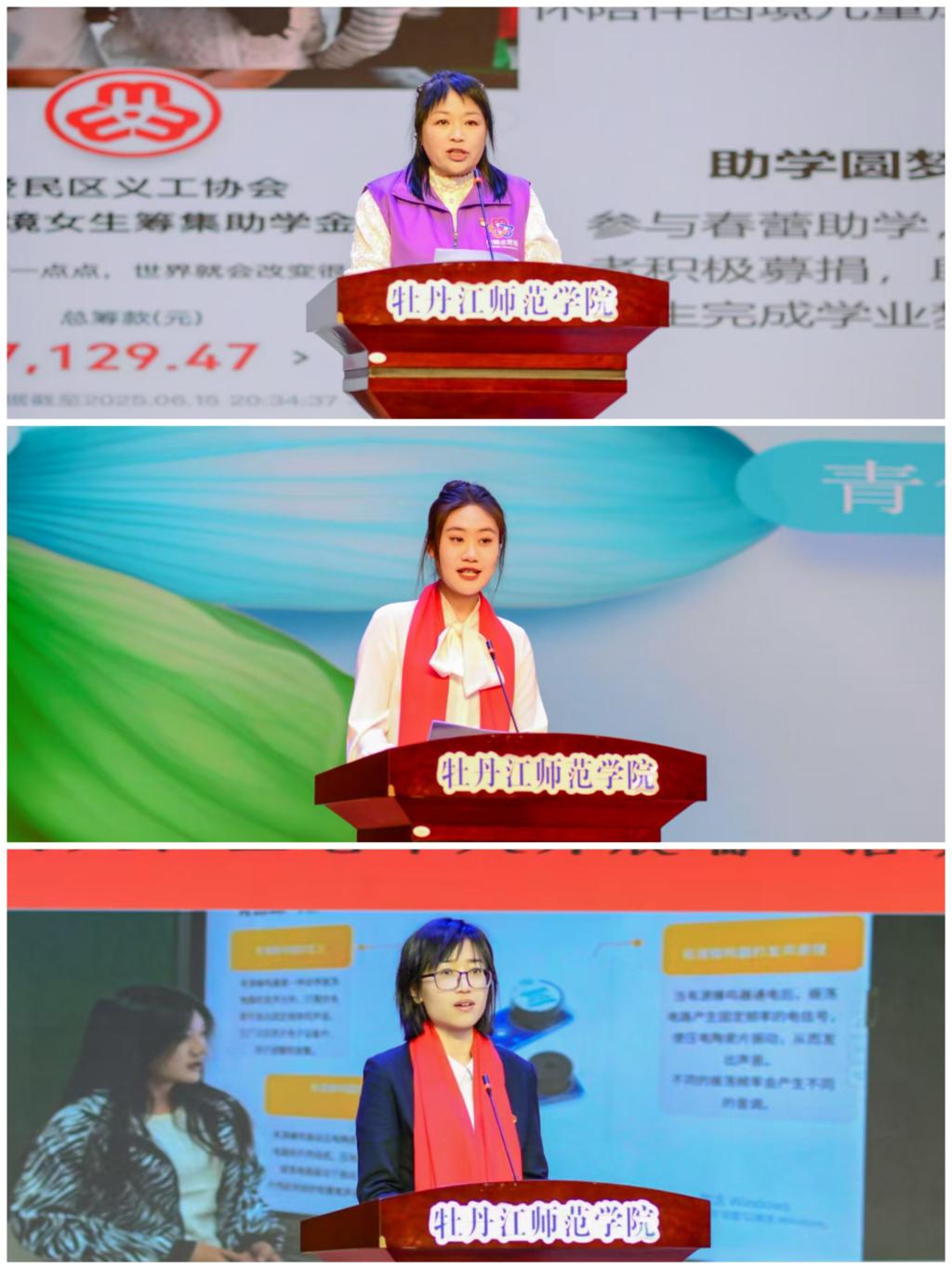 张艳霞在致辞中表示,牡丹江师范学院始终坚守立德树人根本任务,将志愿服务精神深度融入人才培养全过程各环节。下一步,校妇联将进一步凝聚巾帼力量,团结带领全体女教职工潜心育人、深耕讲台,引领女大学生主动走出校园、服务社会,在支教助学、社区服务、公益科普、乡村振兴等基层一线,加强校地合作、深化实践育人、擦亮志愿品牌,充分展现师院巾帼的责任与担当。