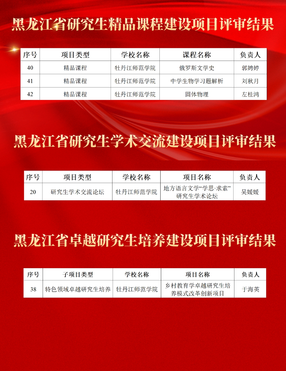 12月2日,黑龙江省教育厅公布了“2022年研究生精品课程等三类高质量建设项目”立项结果。经研究生培养单位遴选推荐、专家评审,黑龙江省教育厅批准2022年立项研究生精品课程建设项目86项、重点领域及特色领域卓越研究生培养建设项目41项、学术交流建设项目42项。我校获批研究生精品课程建设项目3项、卓越研究生培养建设项目1项、学术交流建设项目1项。自省教育厅开展黑龙江省2022年研究生精品课程等三类高质量建设项目立项以...