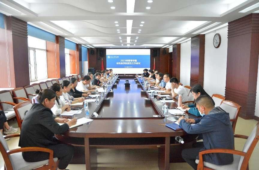 5月25日上午,学校在综合楼1206会议室召开2023年春季学期本科教学阶段性工作会议。各二级学院教学院长,教务处、教学质量评估中心、创新创业学院处科级干部参加会议。副院长、党委常委程爽出席并主持会议。会上,教务处副处长李殿伟通报了期中教学检查相关工作,对专业优化调整、培养方案修订、产业学院建设、实习实践、考试及毕业资格审查等重点工作进行总结,并对下一阶段重点工作进行了安排;教务处副处长韩驰对课程建设、...