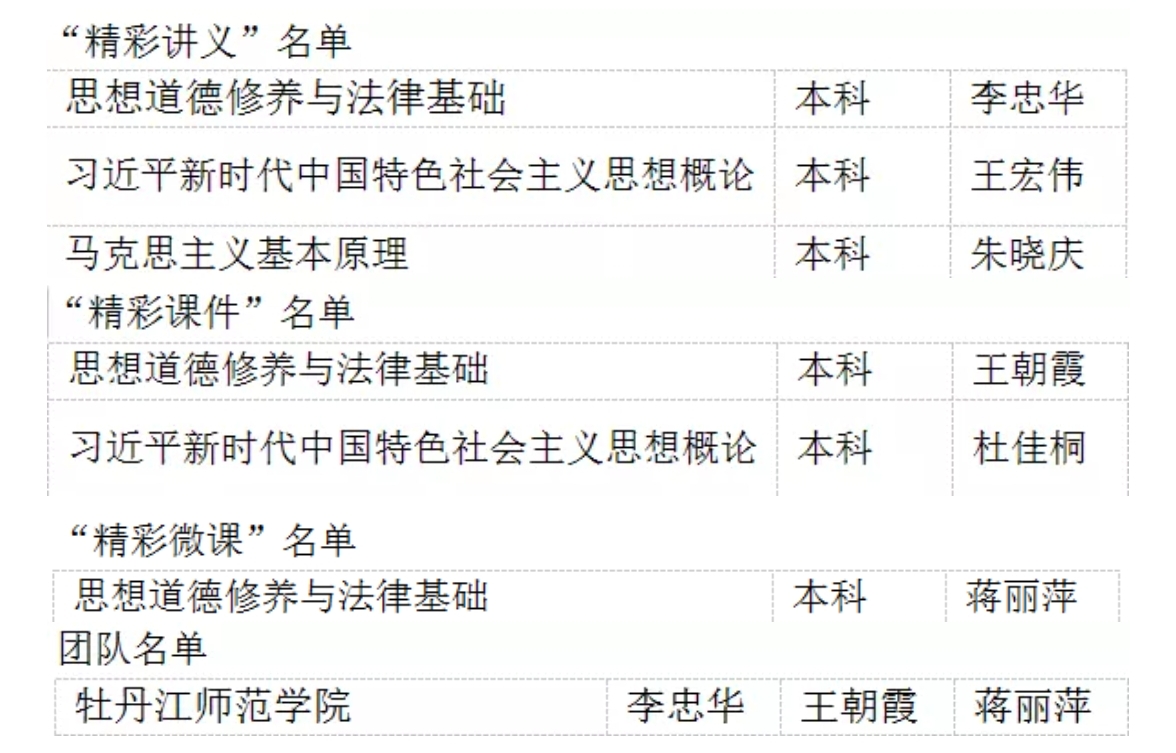 12月31日,黑龙江省教育厅对2021年全省高校思想政治理论课“精彩系列”教学成果评选结果予以公示,我校马克思主义学院成绩斐然,荣获“精彩讲义”3项,“精彩课件”2项,“精彩微课”1项,团体殊荣1项。据悉,全省高校思想政治理论课“精彩系列”教学成果评选活动,旨在深入学习贯彻习近平总书记在学校思想政治理论课教师座谈会上的重要讲话精神,贯彻落实中共中央办公厅、国务院办公厅《关于深化新时代学校思想政治理论课改革...