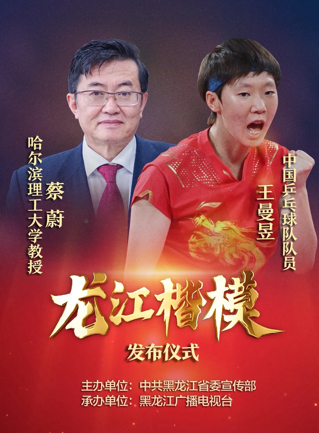 学习楷模精神,汇聚奋进力量。1月14日晚,第九届“龙江楷模”发布仪式在哈尔滨举行。黑龙江省委宣传部决定授予哈尔滨理工大学教授、博士生导师蔡蔚,中国乒乓球队黑龙江籍运动员、奥运冠军王曼昱“龙江楷模”称号。我校干部师生通过极光新闻app同步观看,大家倍受鼓舞、倍感振奋,反响热烈。王志浩 牡丹江师范学院 党委书记蔡蔚、王曼昱被授予“龙江楷模”荣誉称号传遍龙江大地。他们胸怀“国之大者”,攻坚克难,为祖国争光、...